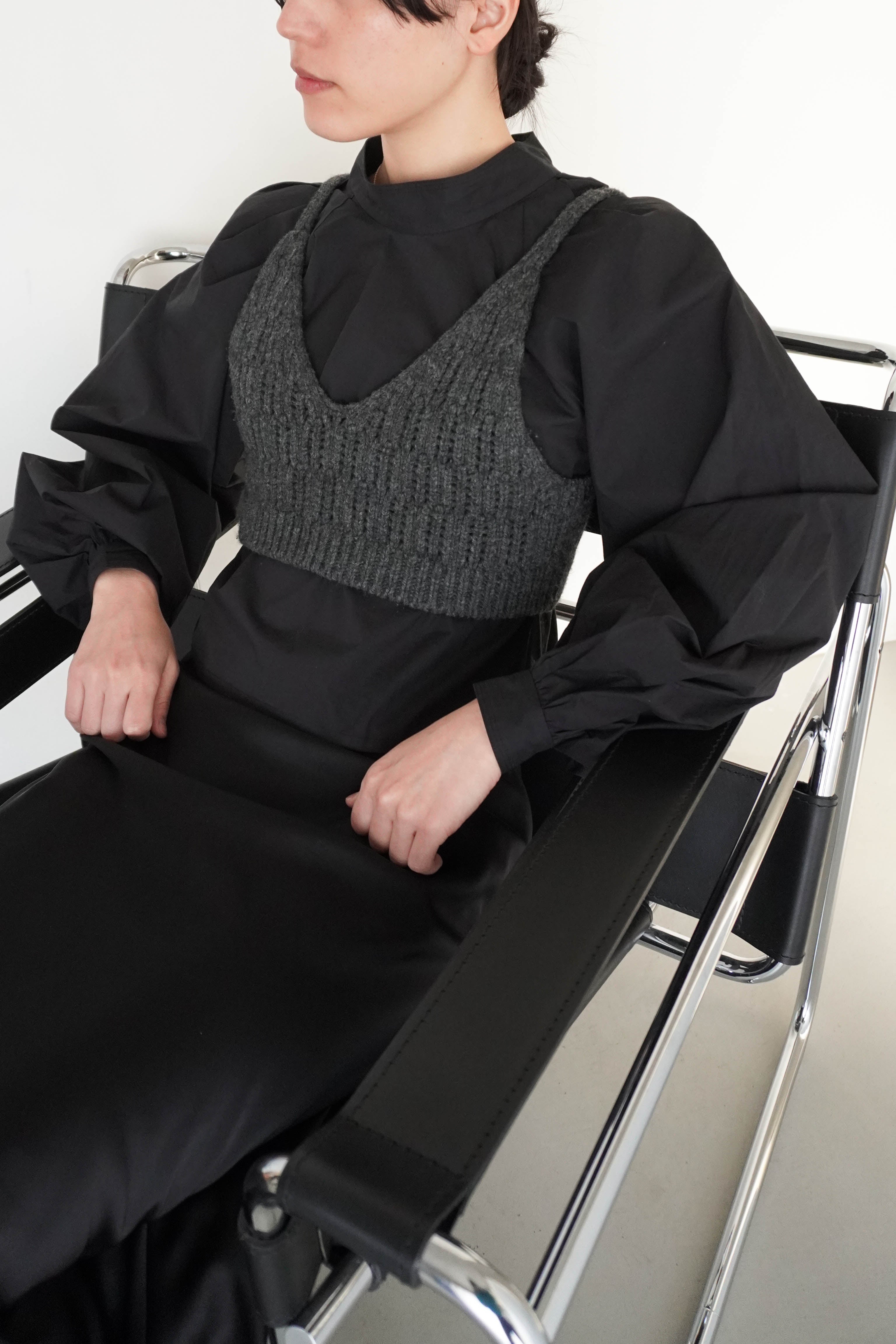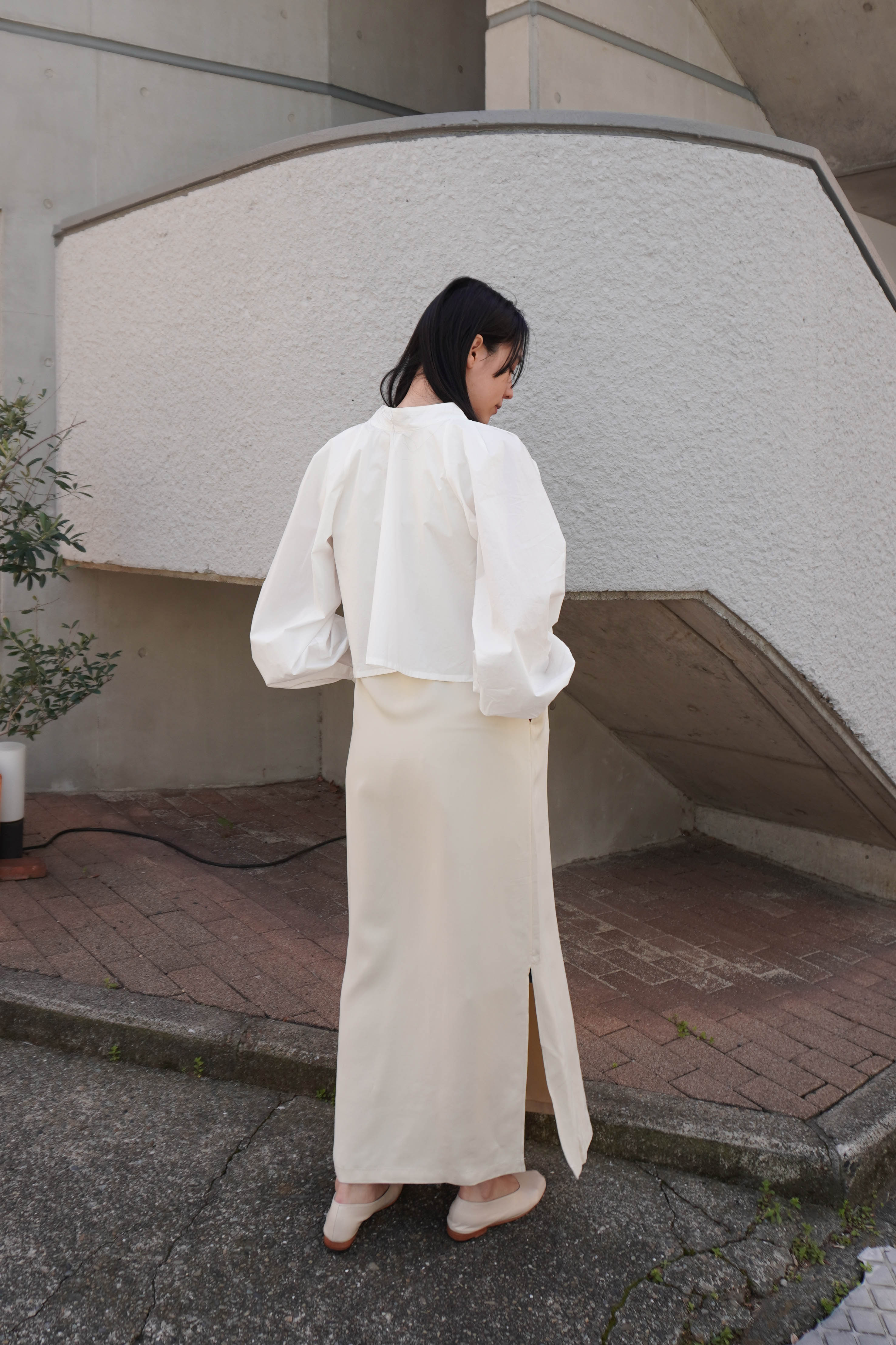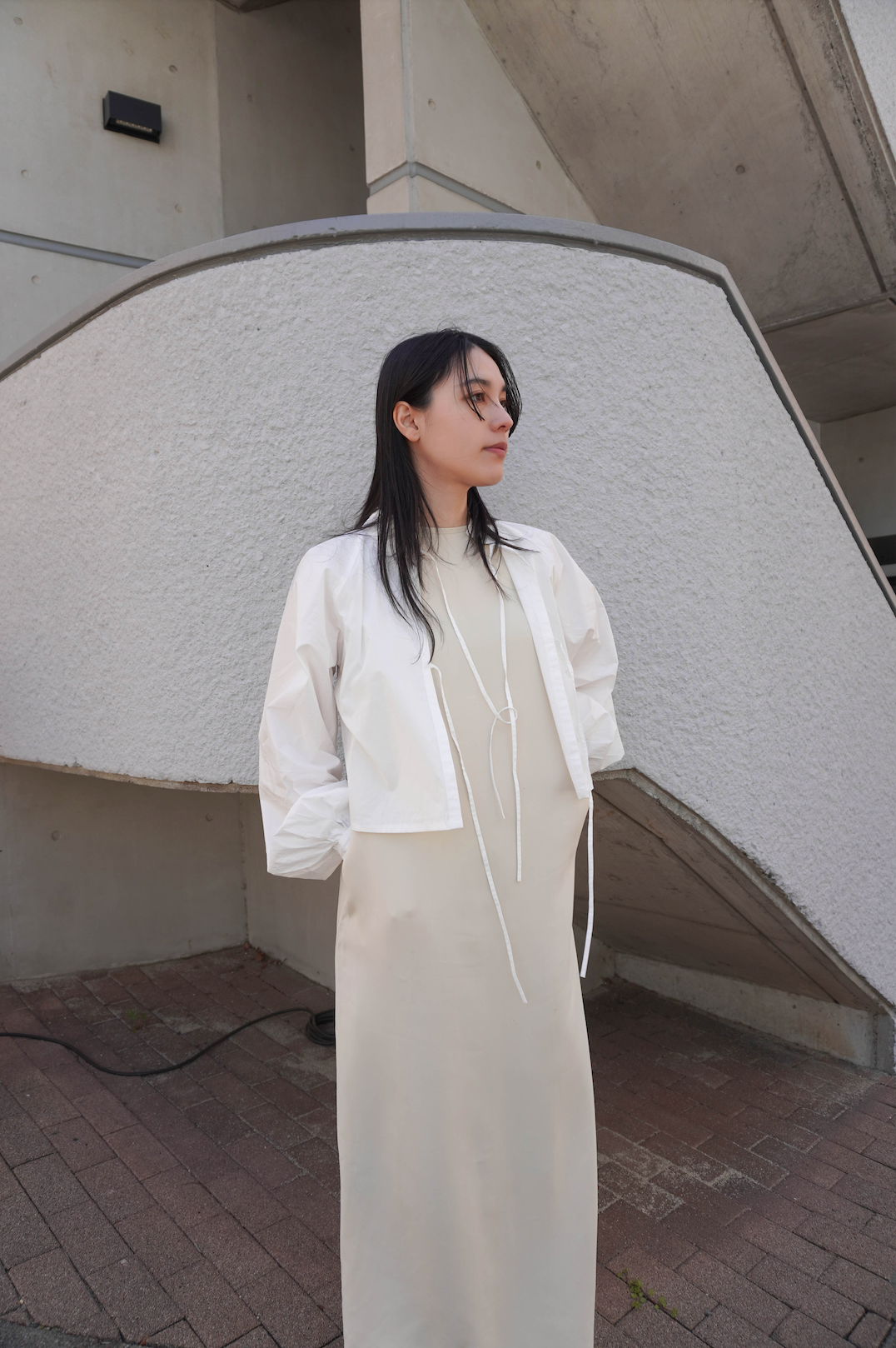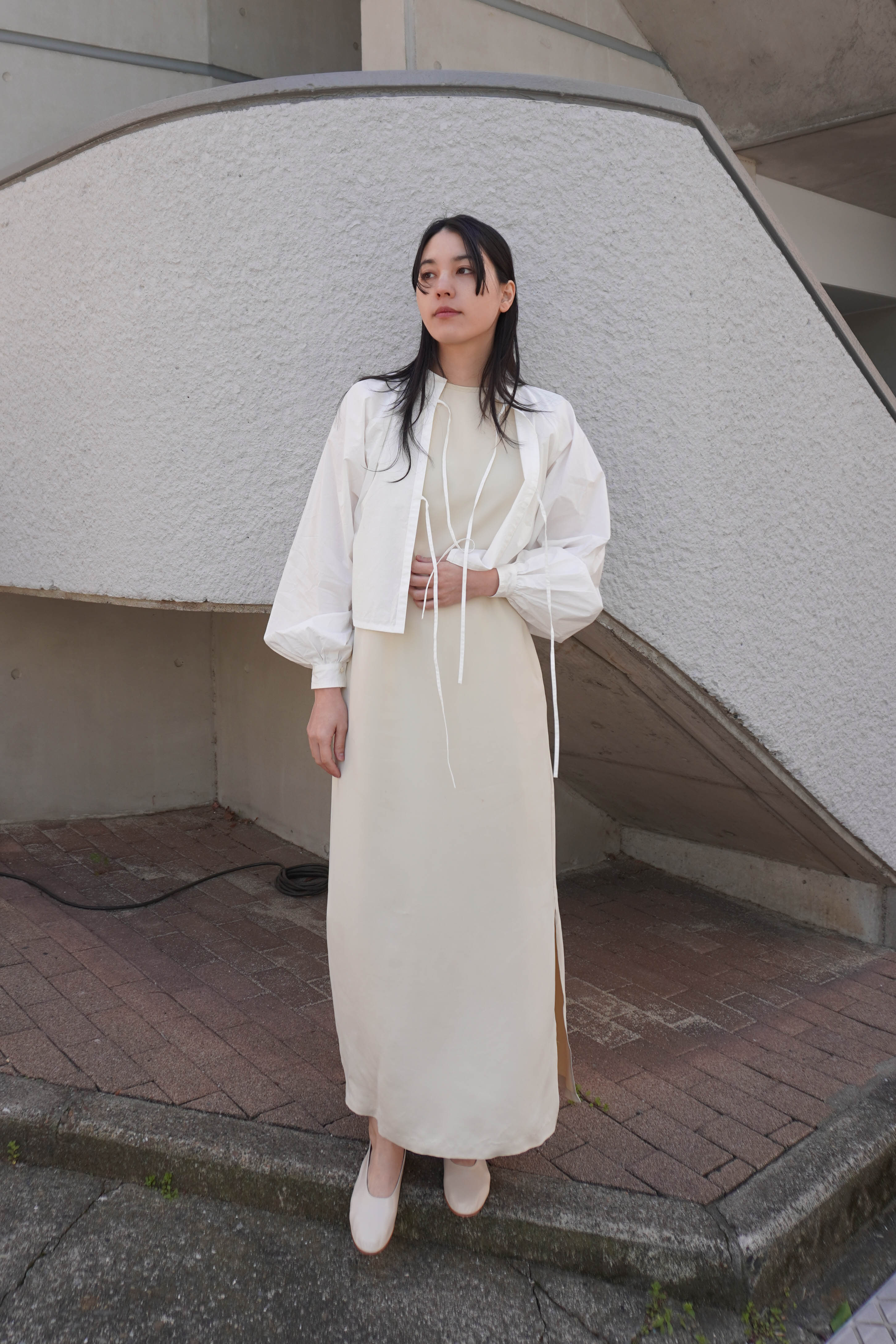 ワンピースの軽羽織りとして、ワントーンでスタイリングし、こなれた印象に。