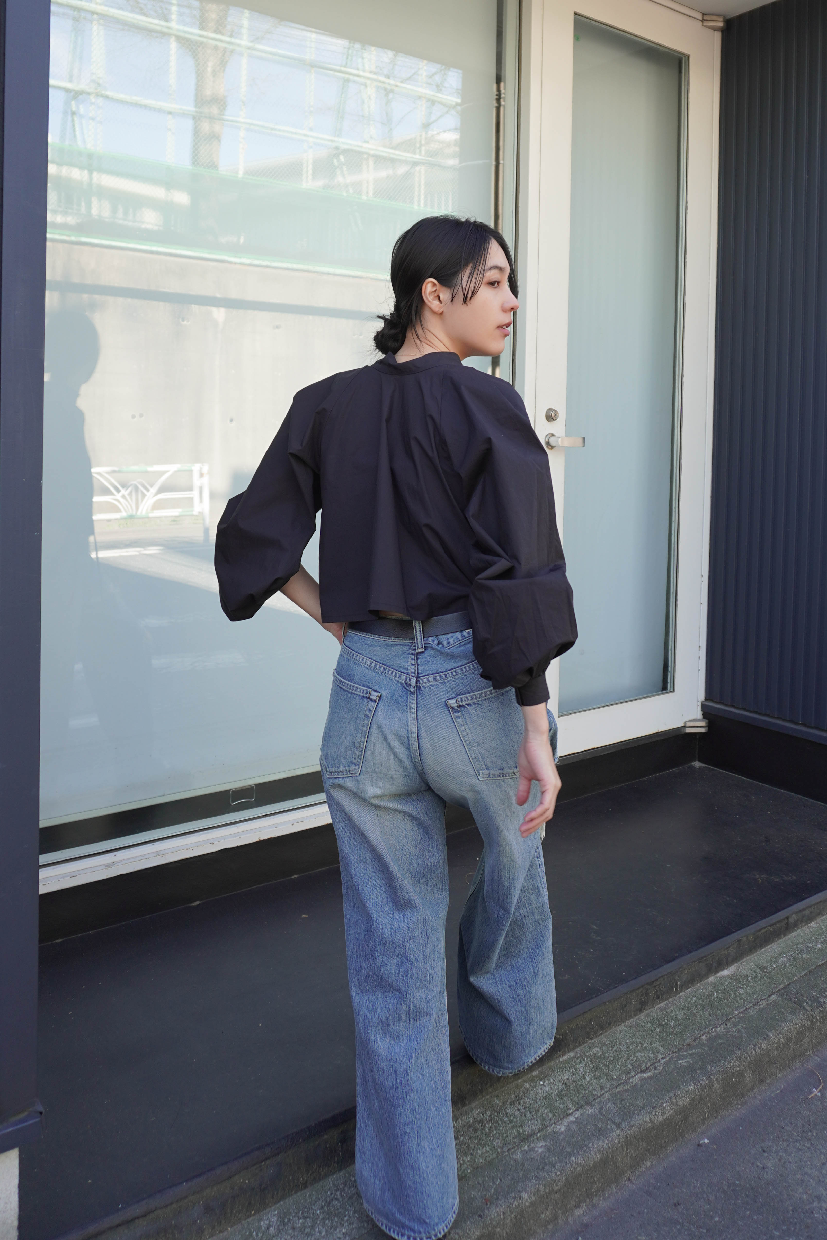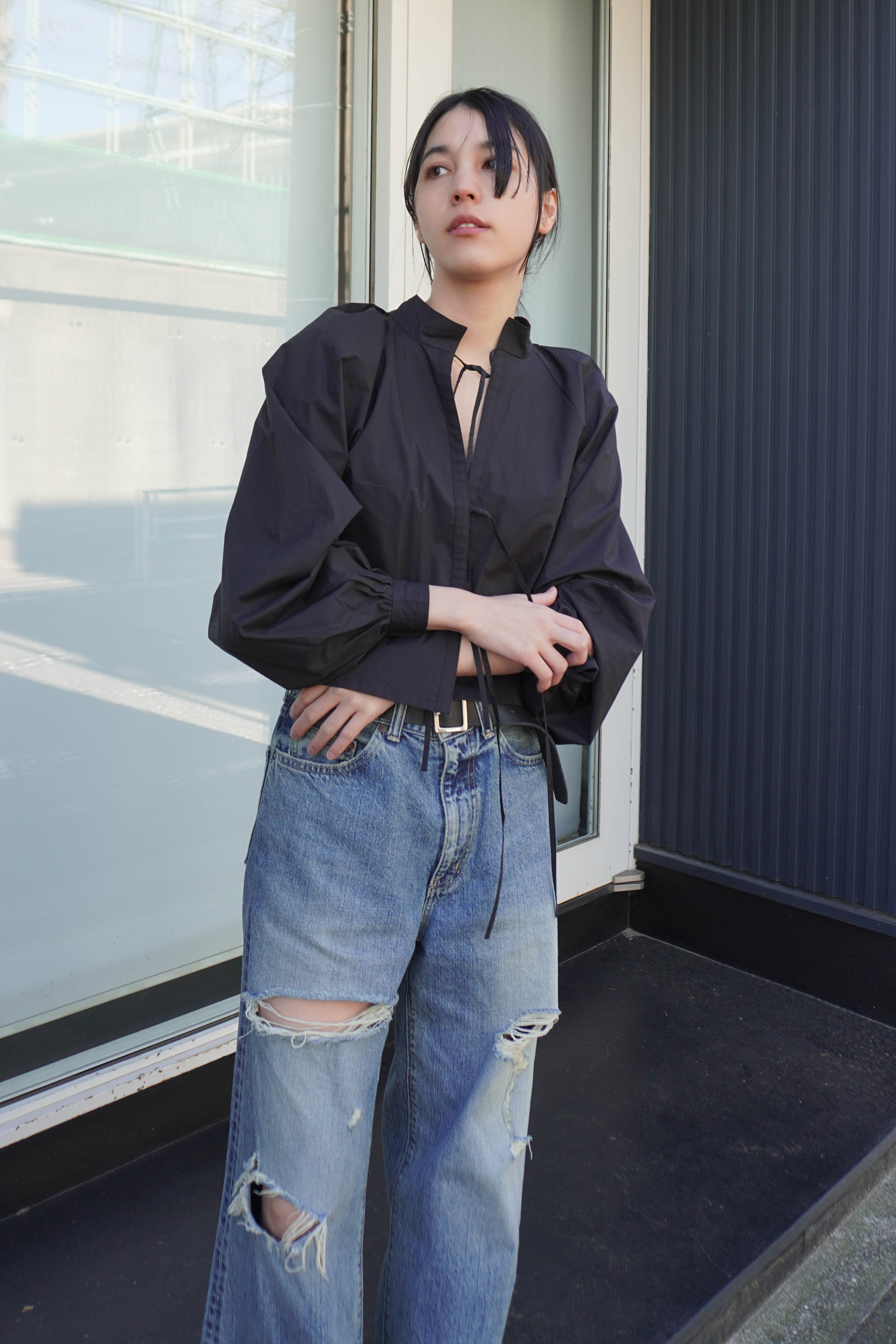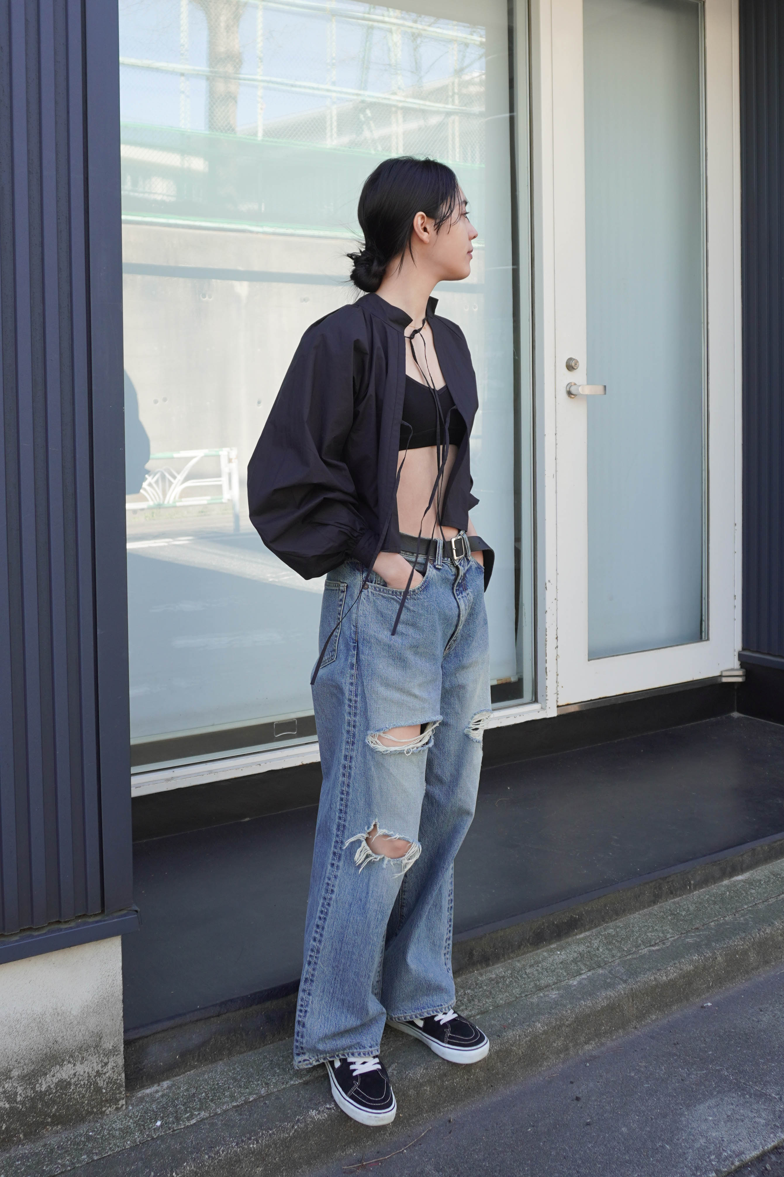 シャツをアウターとしてスタイリング。デニムに合わせてカジュアルに。