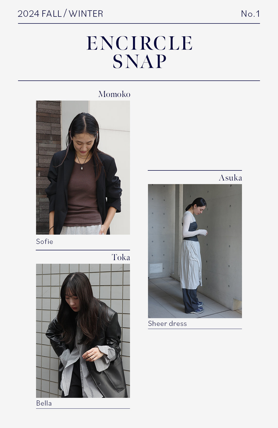 同素材のトップスとワンピースをレイヤードしたスタイリング。 透け感のある素材で一気に今年らしいスタイリングに。