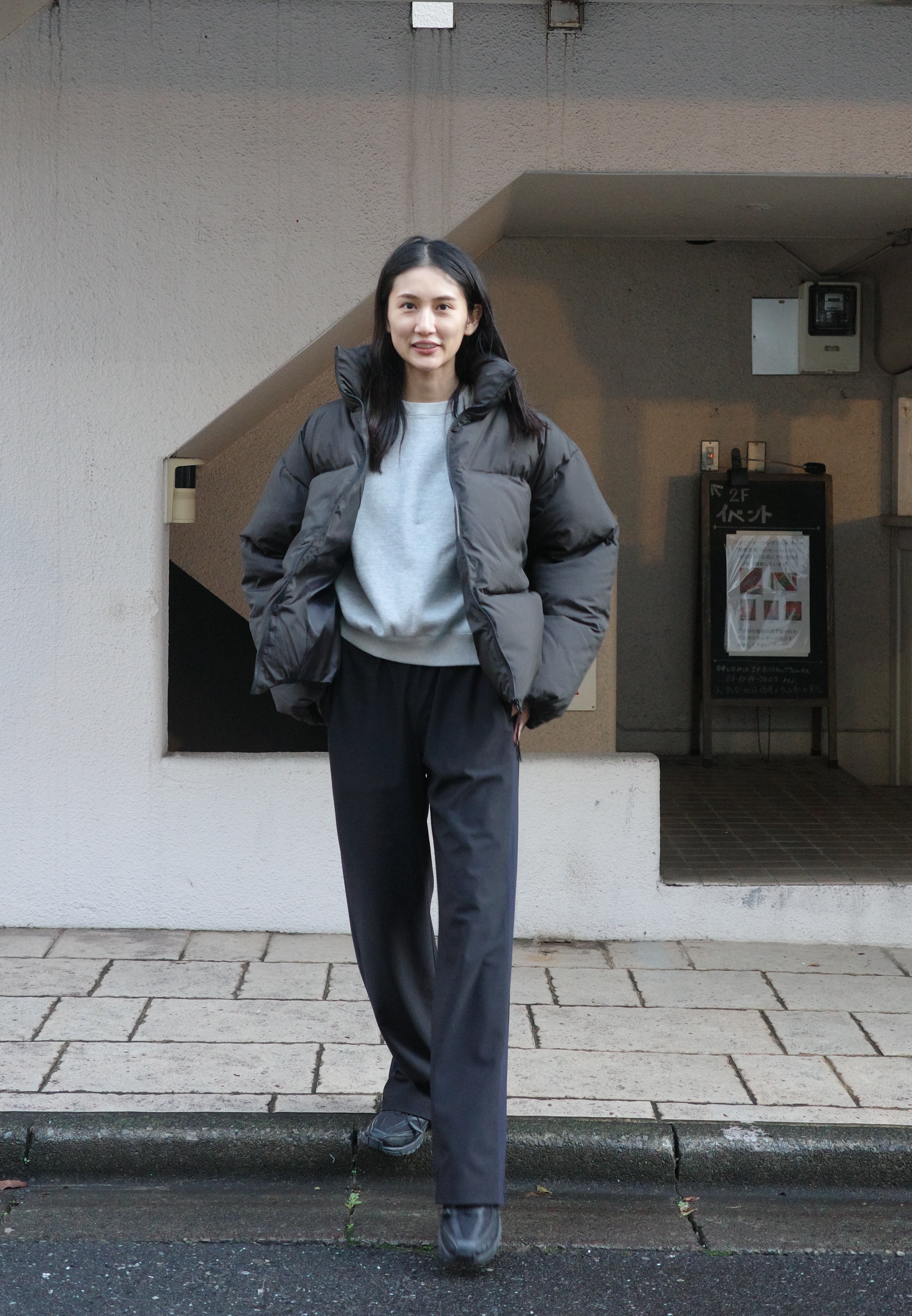 冬の定番スウェットとサイドライン入りパンツを組み合わせた、スポーツMIXスタイル。ゆったりとしたトップスを合わせても、サイドラインの切り替えがアクセントとなり、全体にスポーティーな印象をプラスします。さらに、上品さを感じさせるデザインで、大人でも取り入れやすいのが魅力的。リラックス感と洗練された雰囲気を両立させたコーディネートです。