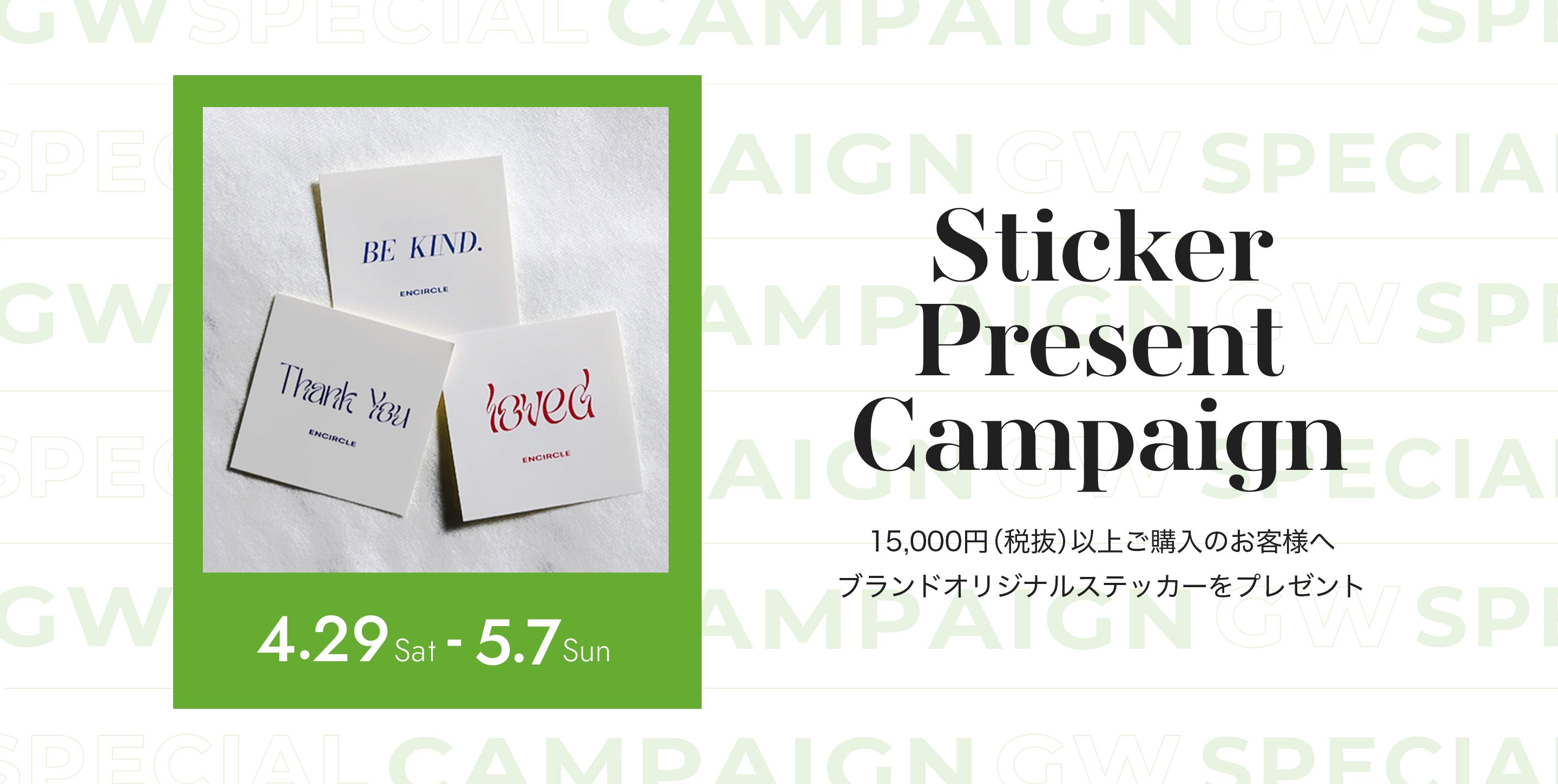 15,000円 (税抜) 以上ご購入のお客様へ、ブランドオリジナルステッカーをプレゼント!