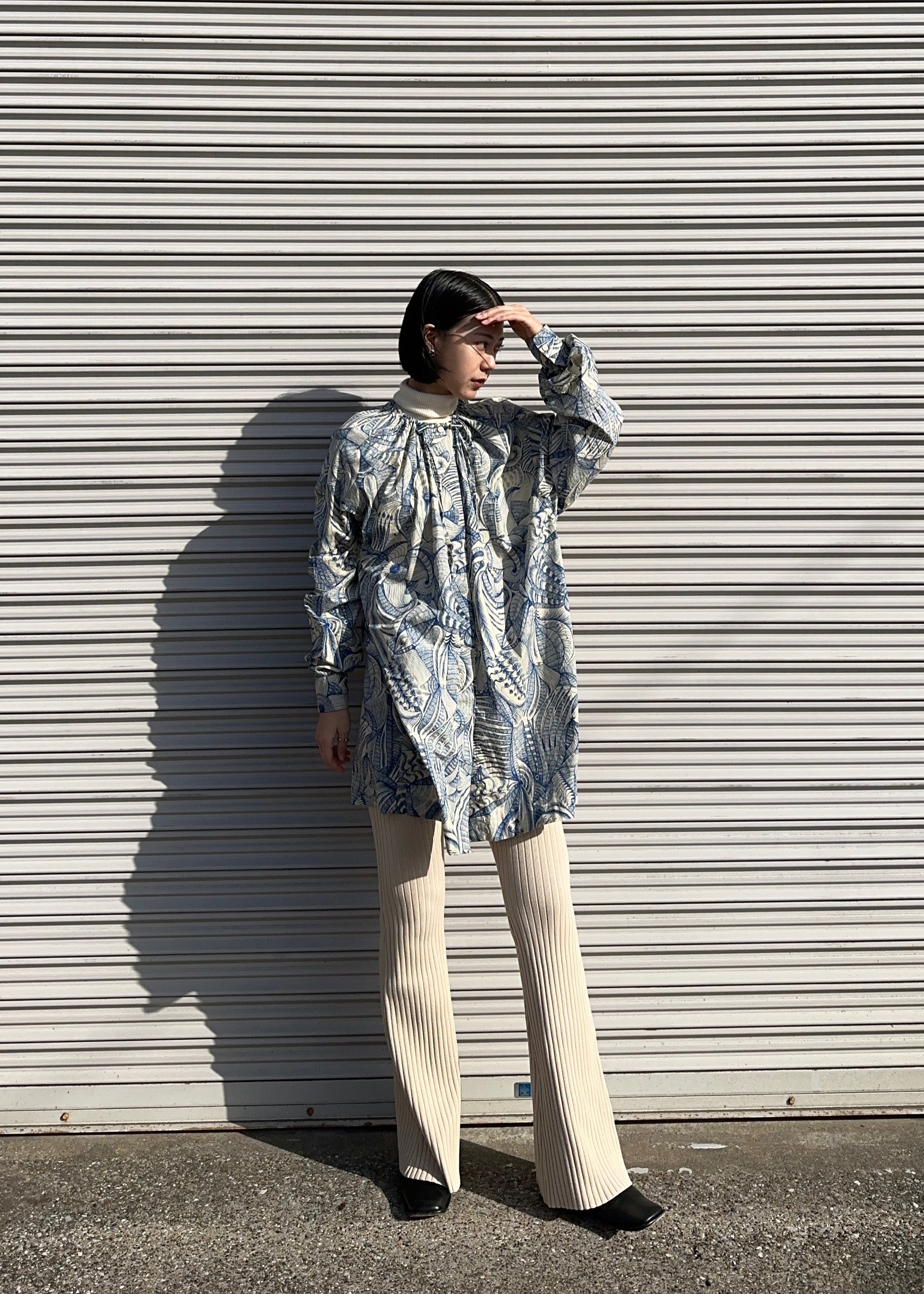 白のワントーンで揃えました。柄物を合わせる時は派手になり過ぎないよう、柄のトーンに全体のカラーを合わせて馴染むようにしています。