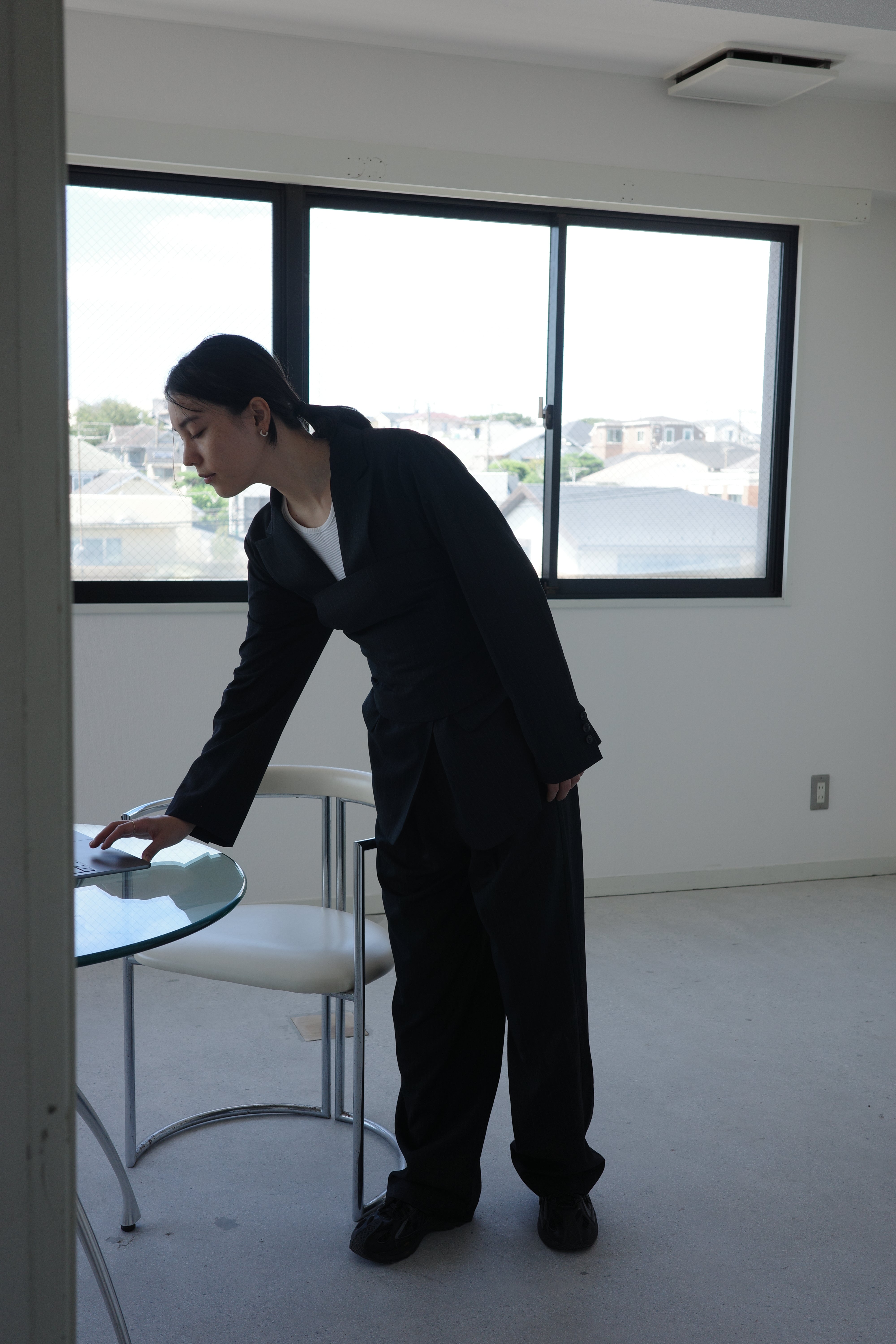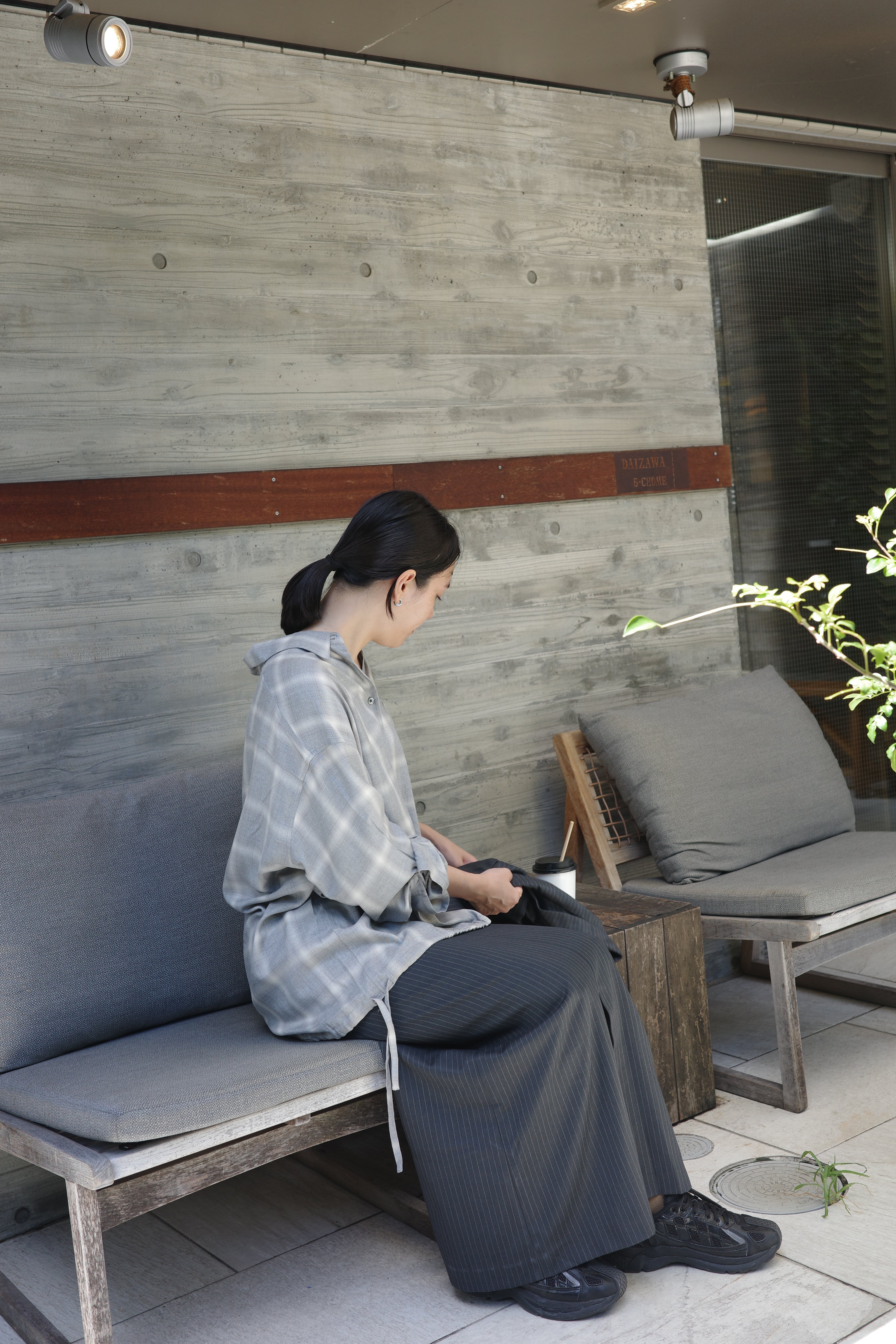 共生地のjkとpantsは、一緒にスタイリングしていただくとセットアップとして着用いただけます。オフィスカジュアルにもピッタリです。