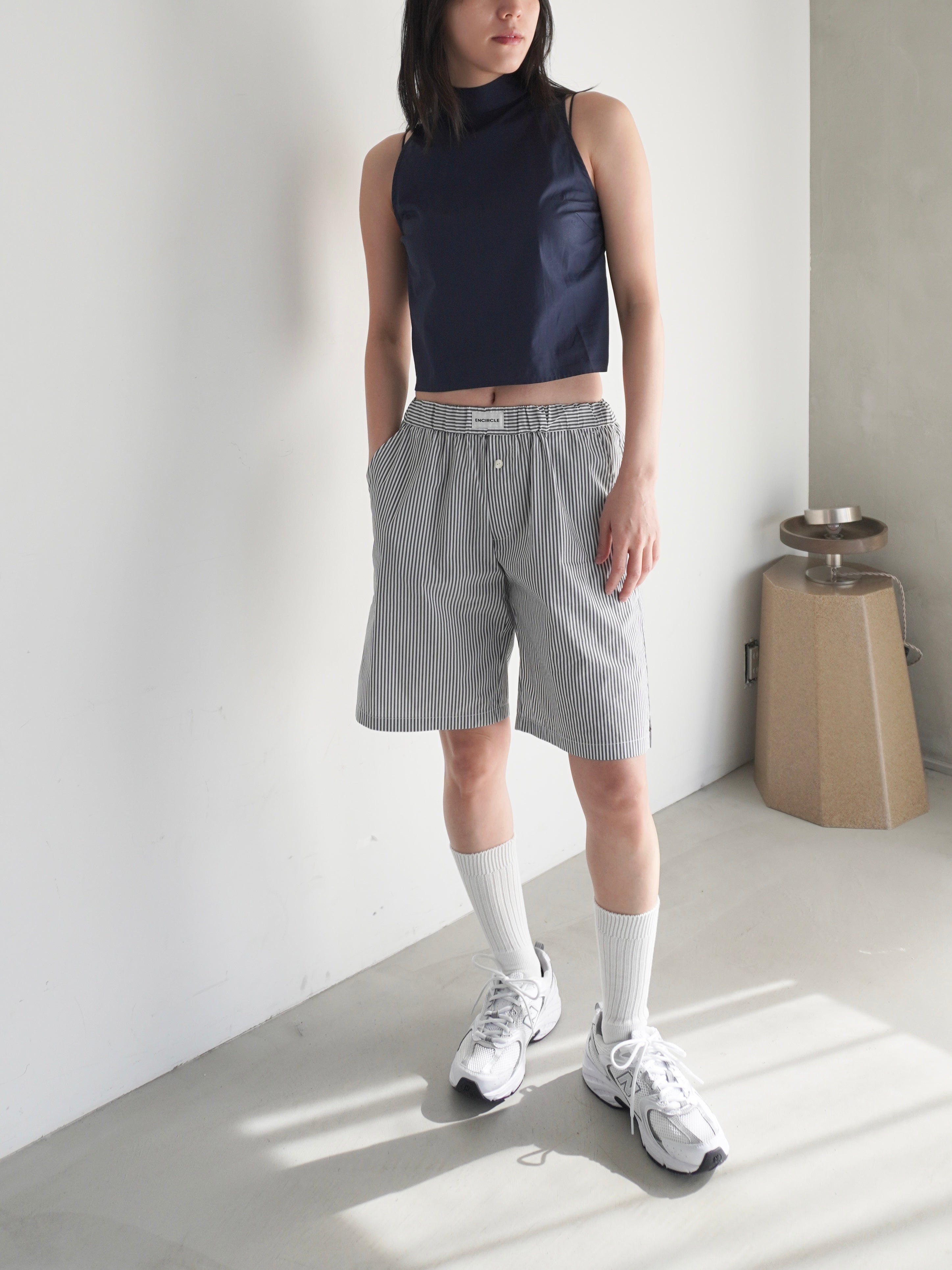 ドレンドのboxer shortsとも相性◎ メンズライクになりすぎ図、女性らしくもカジュアルな印象に。