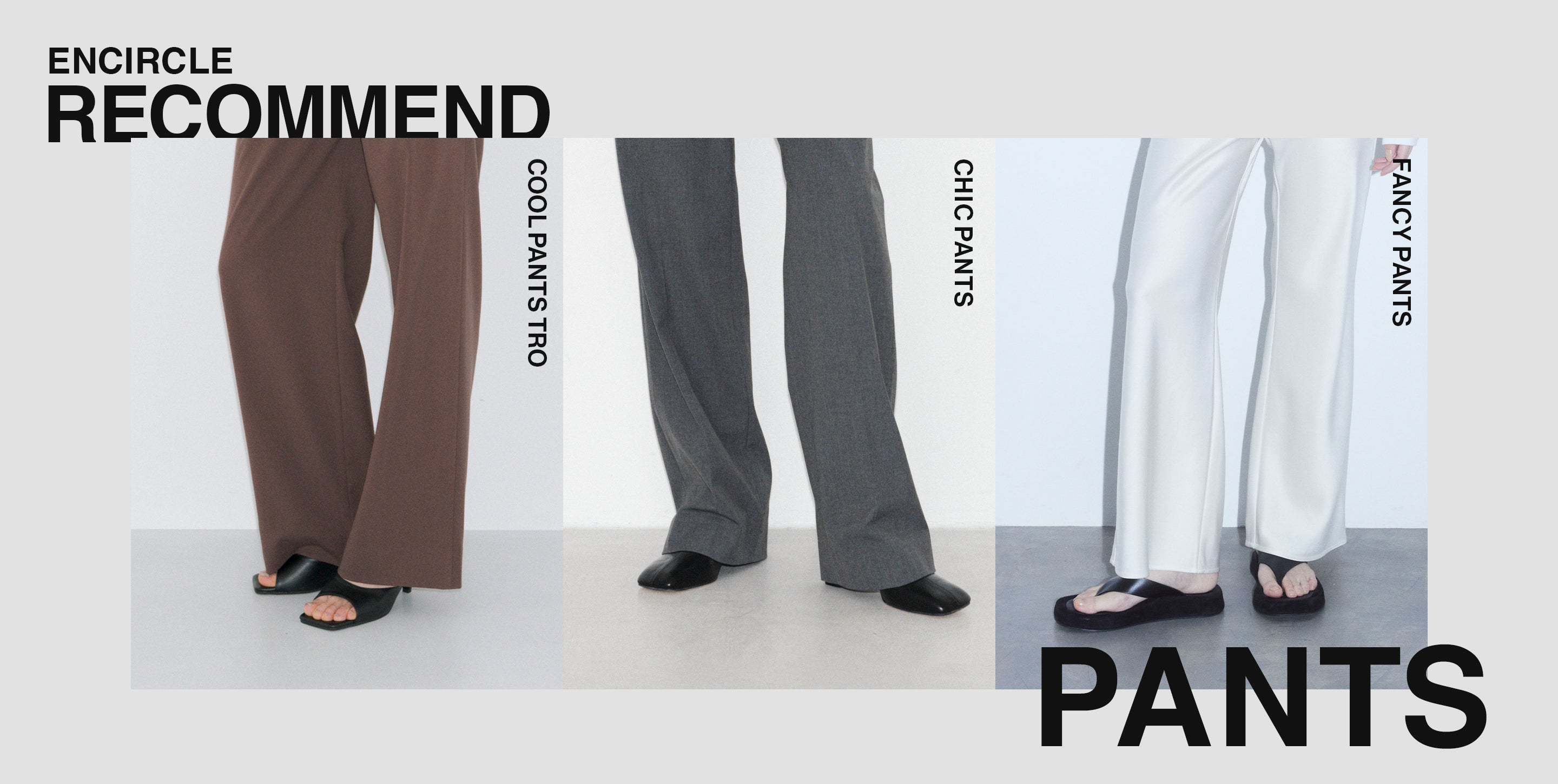ウエストラインの工夫でスッキリ着痩せを実現。太ももやヒップ周りをカバーしつつ、セミワイドなストレートデザインで美しくスタイルアップします。
