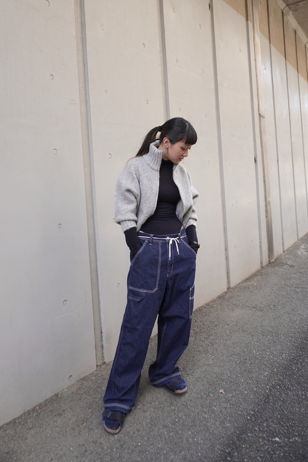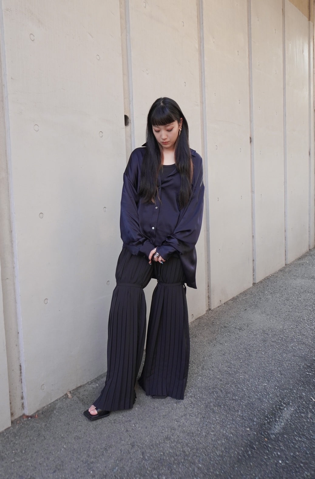 サラッと着られるシャツには、あえてボリューム感のあるパンツを合わせて、遊び心のあるコーディネートに。