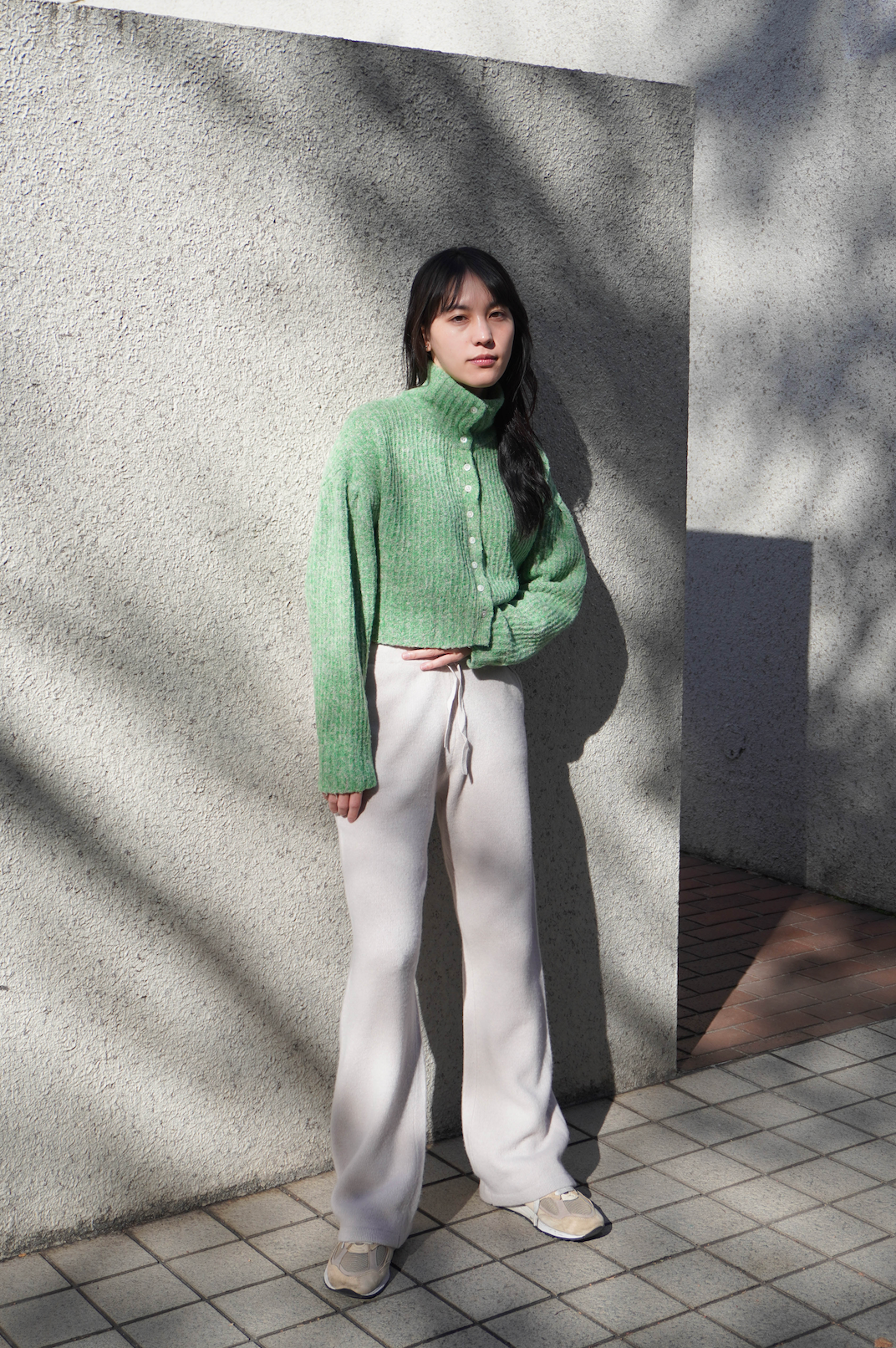 ニット×ニットでバランス感◎ 落ち感のある素材とニュアンスカラー合わせでこなれた印象に。