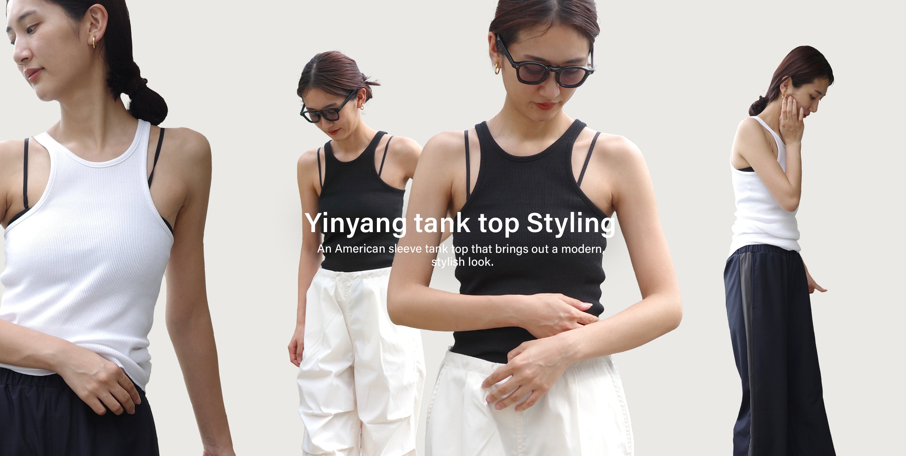 夏の定番・タンク×デニムの王道スタイル。 絶妙なカッティングのYin Yang tank topに、他にはないニュアンスカラーのデニムを合わせて、 シンプルなのに印象的。周りと差がつく、大人のカジュアルコーデに仕上がります。